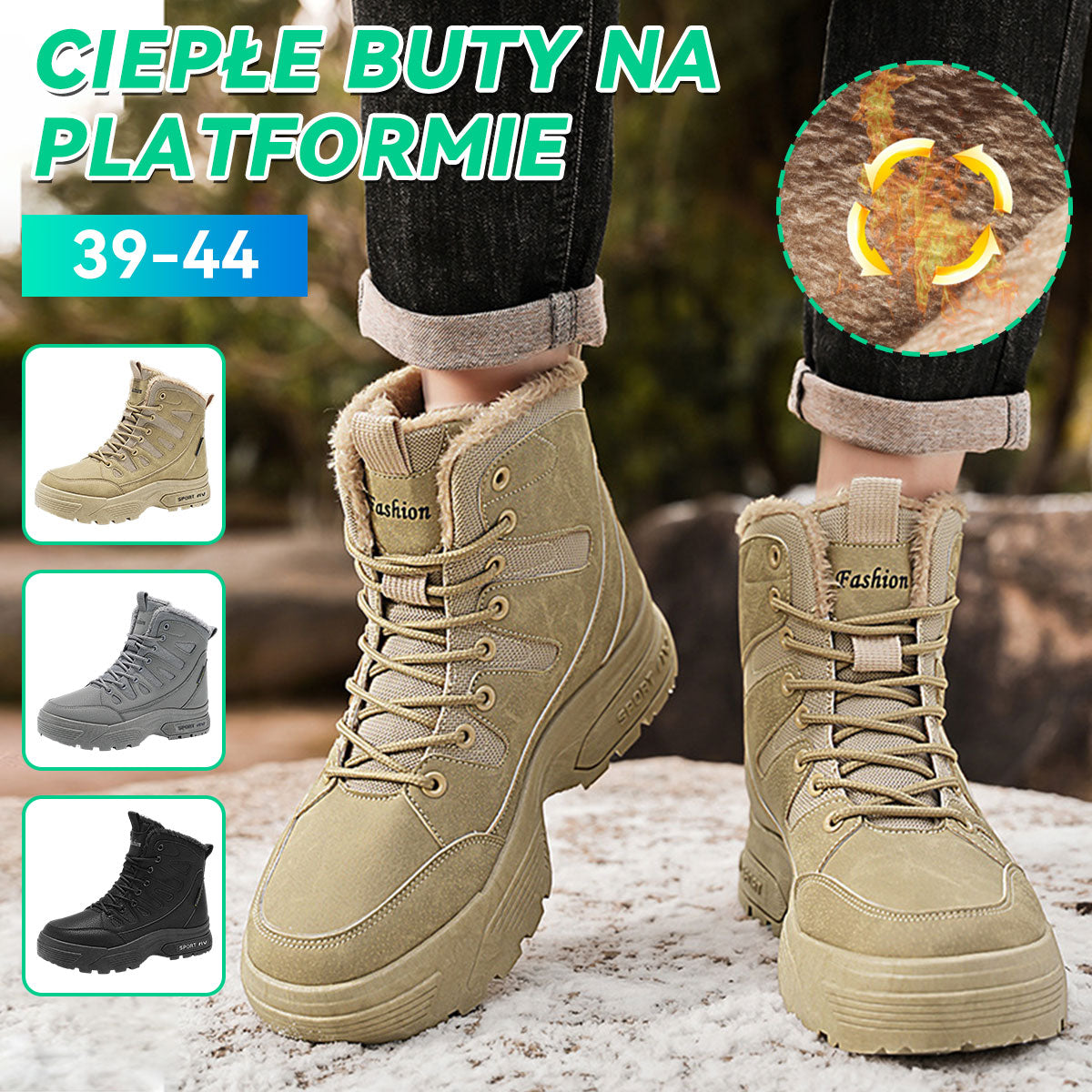Męskie, ocieplane, ocieplane buty Martin, odporne na zimno i antypoślizgowe