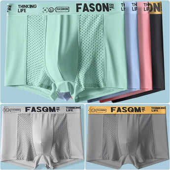 🎈 (6 szt.) Męskie bokserki z lodowego jedwabiu z przewiewną siateczką